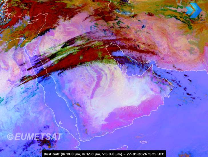 Rather cold to mild and partly cloudy with light to moderate freshening at times southeasterly wind , with speed of 15 - 50 km/h causing rising dust over open areas with a chance for scattered rain later on .